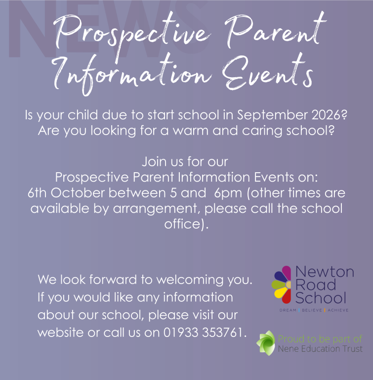 On behalf of all the staff I am happy to welcome you to Newton Road School, a proud member of Nene Education Trust. There are many exciting things in store for all of our children. We are looking forward to a productive partnership with you to ensure our children can achieve their highest potential. We recognise that in order to be successful in school our children need support from both home and school. We know a strong partnership with you will make a great difference in your child’s education. As partners, we share the responsibility for our children’s success and want you to know that we will do our very best to carry out our responsibilities. We ask that you guide and support your child’s learning by ensuring that your child: